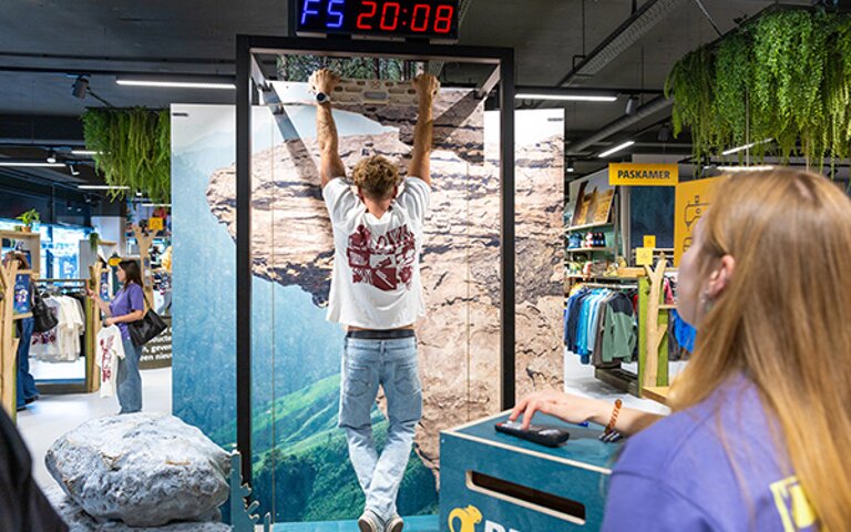 Standnr. 12 - Ga de uitdaging aan bij de hangwand – wie blijft er het langst hangen? De winnaar ontvangt een Bever-cadeaukaart t.w.v. €200.