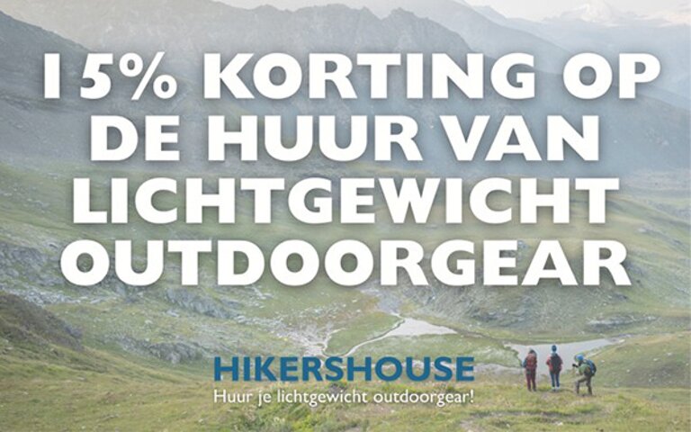 Standnr. 22 - Van 8 t/m 15 maart krijg je 15% korting op de huur van lichtgewicht outdoorgear. Kom langs bij de stand en neem een ansichtkaart met kortingscode mee.