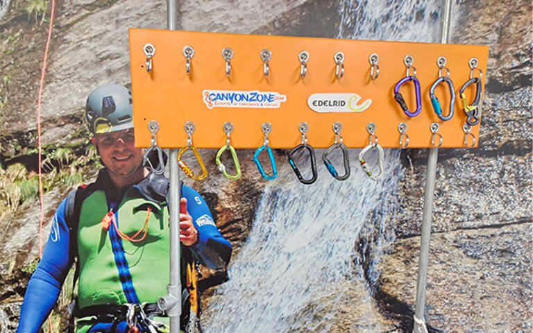 Standnr. 14 & 15 - De snelle clip-challenge - probeer het tijdens de Bergsportdag! Het doel is om verschillende karabiners met vergrendeling zo snel mogelijk met één hand van de ene rij naar de andere te verplaatsen. De snelste tijden winnen een mooie prijs van Edelrid & CanyonZone. Denk je dat je het beter kunt? Kom langs bij de stand van CanyonZone - Edelrid en probeer het!